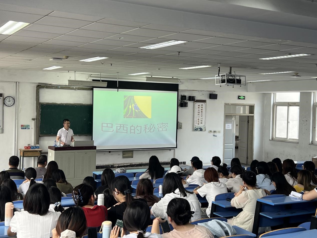 课堂上,王彦松以其丰富的教学经验和独特的教学方法,将巴西的地理风貌生动地展现在学生面前,以学生为中心,从不同角度探讨雨林开发与保护的矛盾与解决之道等问题。同时,还深入讲解了巴西人种的构成,以及不同文化在巴西的交融与传承,拓宽了学生们的国际视野。