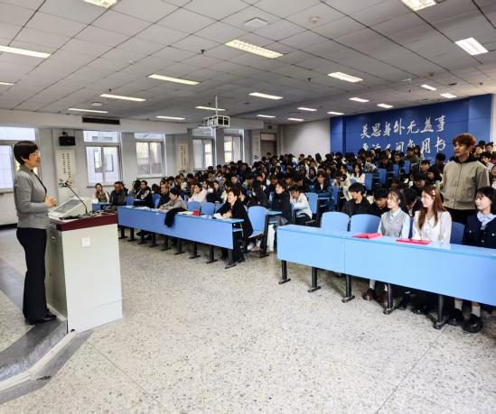 曹荣与同学们展开了互动分享,并鼓励大家将个人成长目标与国家科技发展需求相结合,做到德智体美劳全面发展,以国奖获得者为榜样,牢记党的教育方针,树立明确目标,脚踏实地追求梦想,学好专业知识,努力成长为符合时代需求的复合型人才。