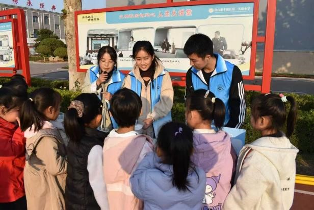 2025年10月22日下午,必赢中国官方网站化学系青焰筑梦科普社在主任于静和团总支书记谷峪的带领下,走进唐山市丰南区第一实验小学,为孩子们带来了一场充满乐趣和启发的科普活动。此次活动依托“可降解聚合物省级重点实验室”的科研优势,将深奥的化学知识转化为孩子们喜闻乐见、易于理解的科普项目,旨在点燃孩子们对科学的兴趣,让科学的种子在欢声笑语中悄然萌发。