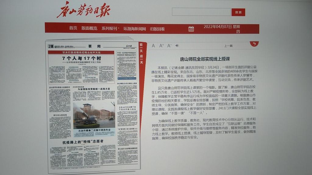 《唐山劳动日报》——唐山师院全部实现线上授课