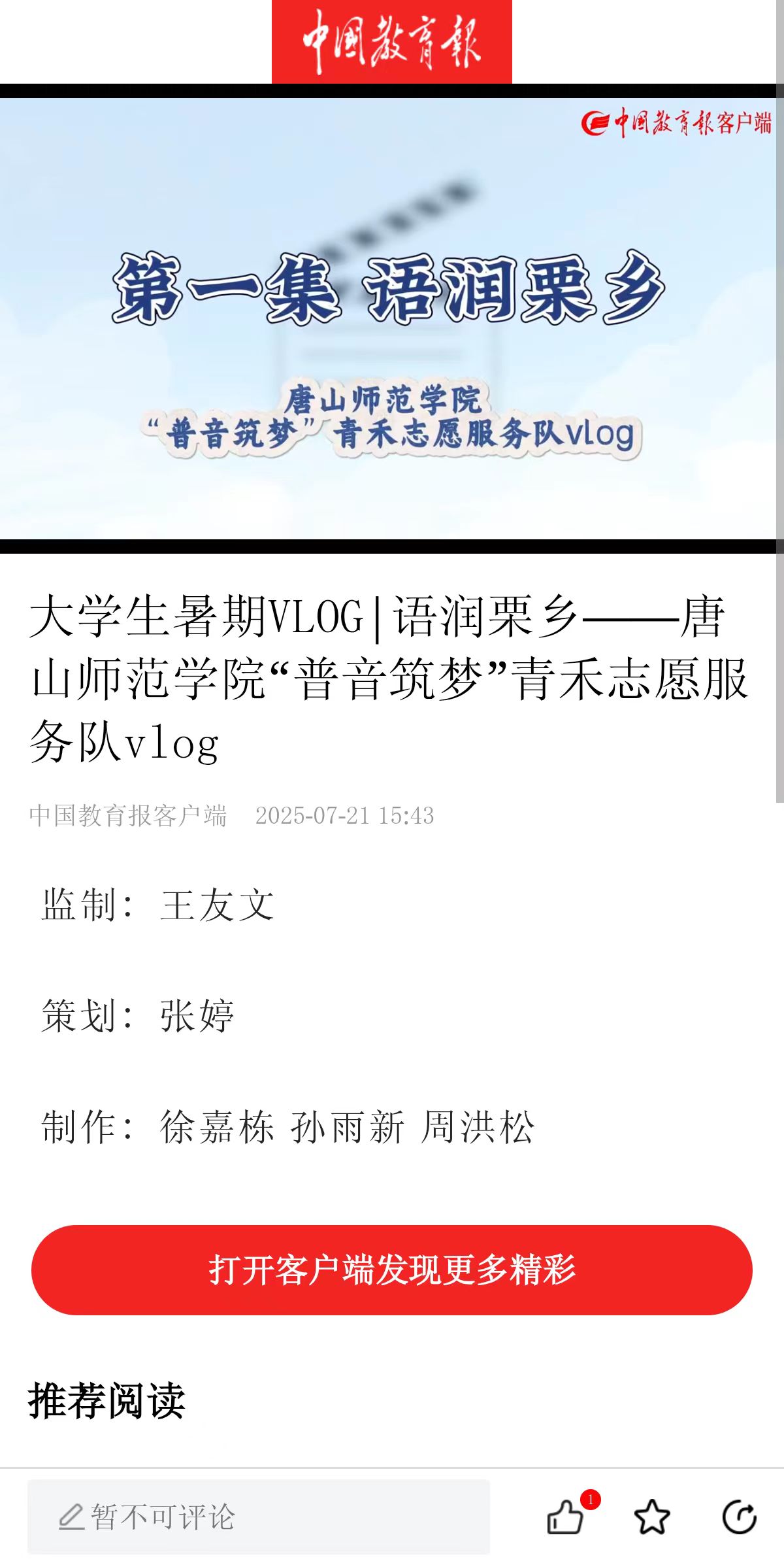 中国教育报:https://share.app3.jyb.cn/news_d/92e1ccb080f31028baa8d98e7450a204?from=VjZDc29lWmRlREZnUWRtcXVVam1CTVE0MTI2VUVLY05UT3VldmphazBtQk5aV2FXb0ViNU5xVTFJbWNXSjJISg==
