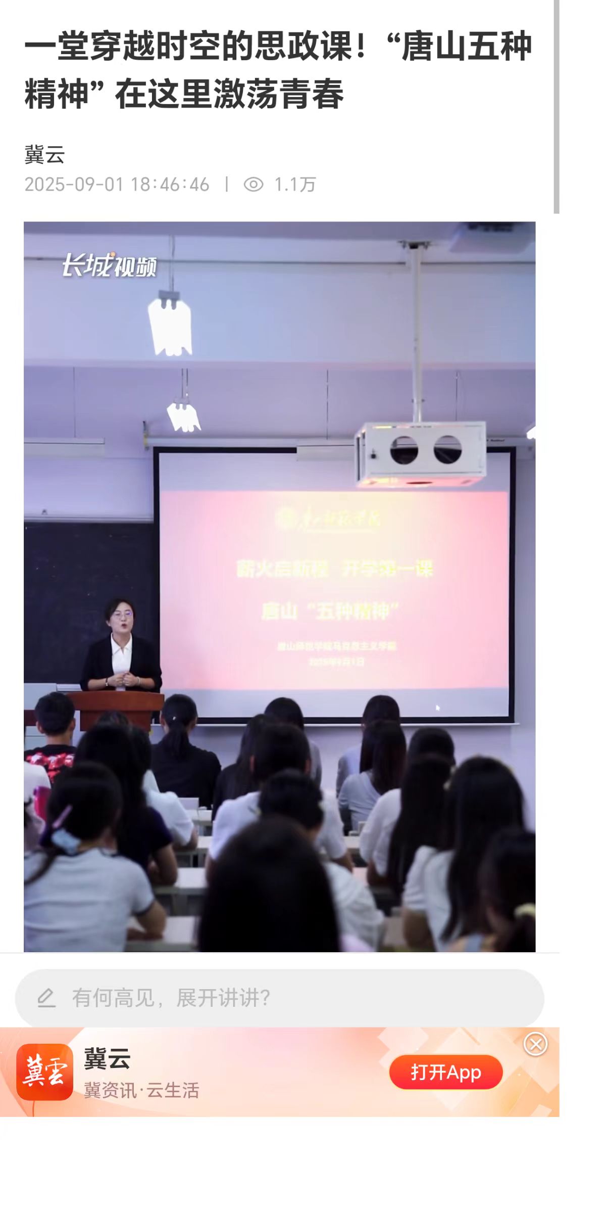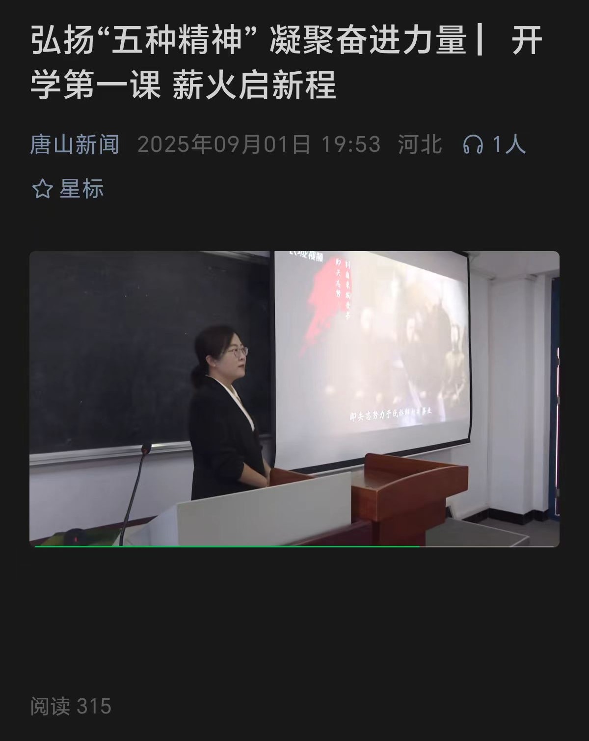 唐山新闻:https://mp.weixin.qq.com/s/ZIs9uzUjxcBsGBUHdh7mRg?from=singlemessage&scene=1&subscene=10000&clicktime=1756815969&enterid=1756815969&sessionid=0&ascene=1&fasttmpl_type=0&fasttmpl_fullversion=7891596-zh_CN-zip&fasttmpl_flag=0&realreporttime=1756815969710