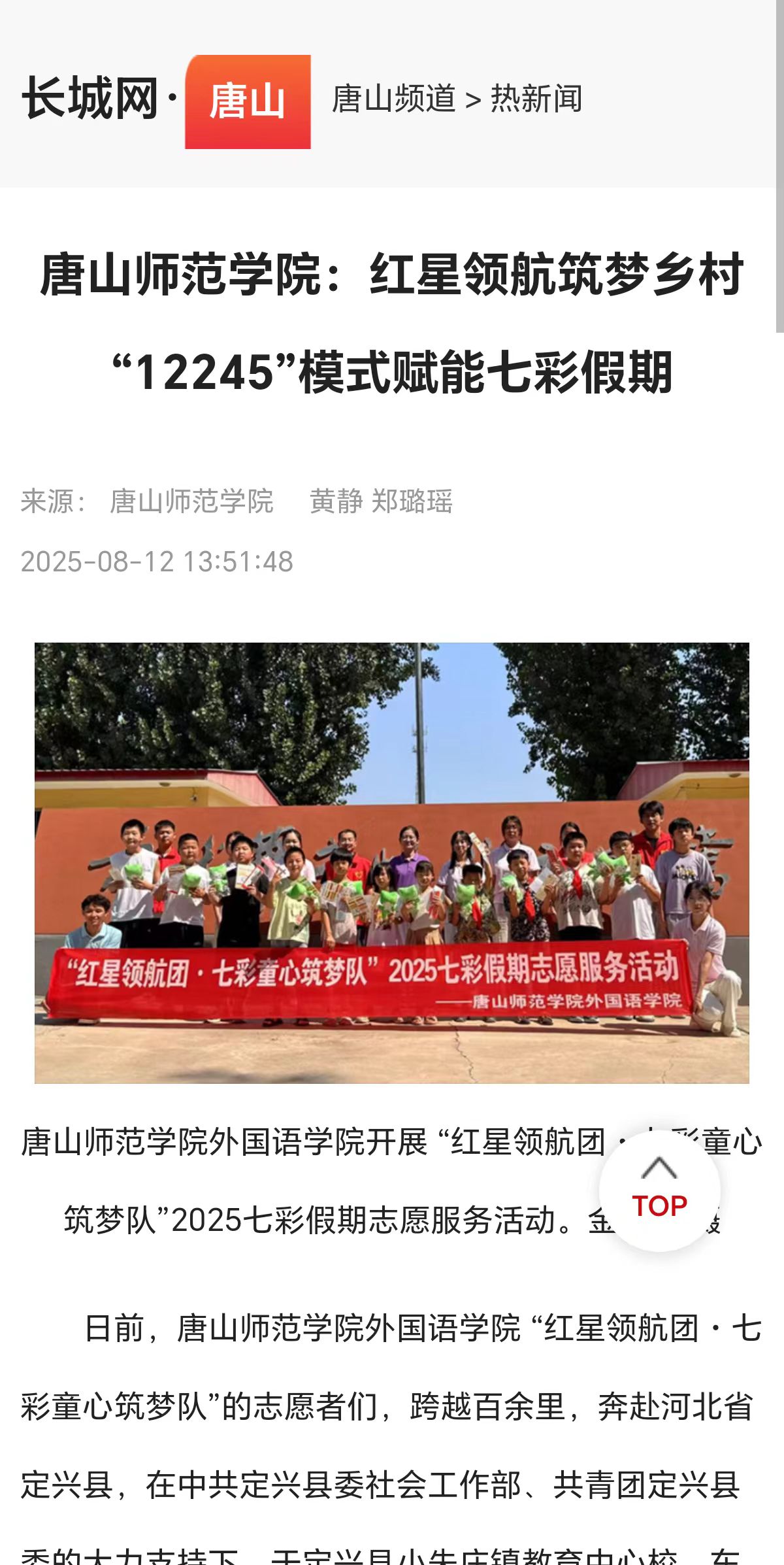 必赢中国官方网站外国语学院 “红星领航团・七彩童心筑梦队”的志愿者们,跨越百余里,奔赴河北省定兴县,在中共定兴县委社会工作部、共青团定兴县委的大力支持下,于定兴县小朱庄镇教育中心校、东落堡镇教育中心校和新华社区开展了三场志愿服务助学活动,这也是必赢中国官方网站外国语学院“12245”师范生实践育人模式的又一次生动实践。