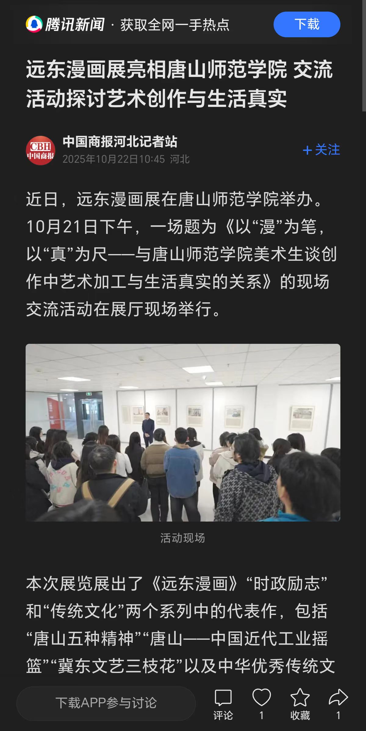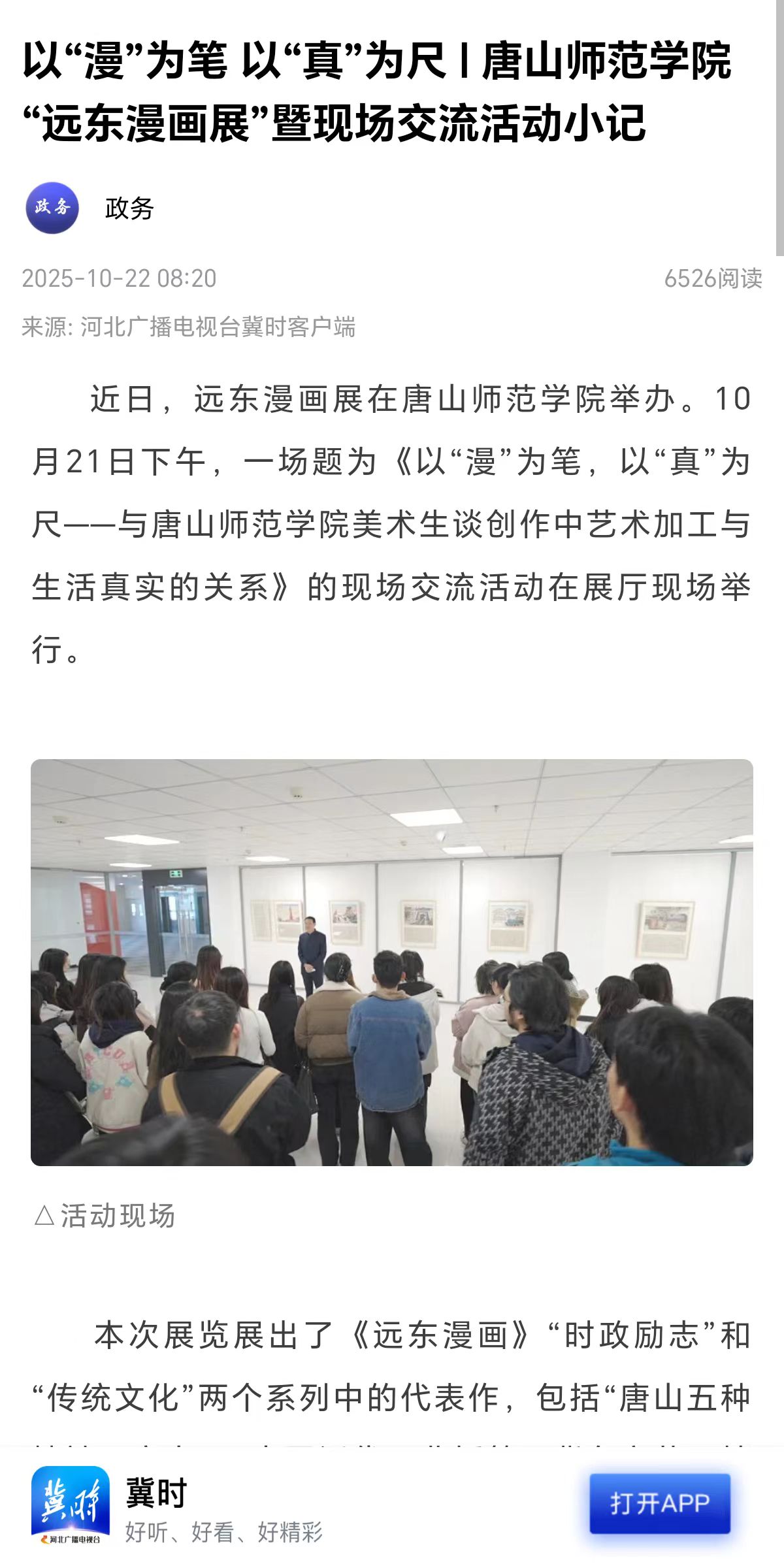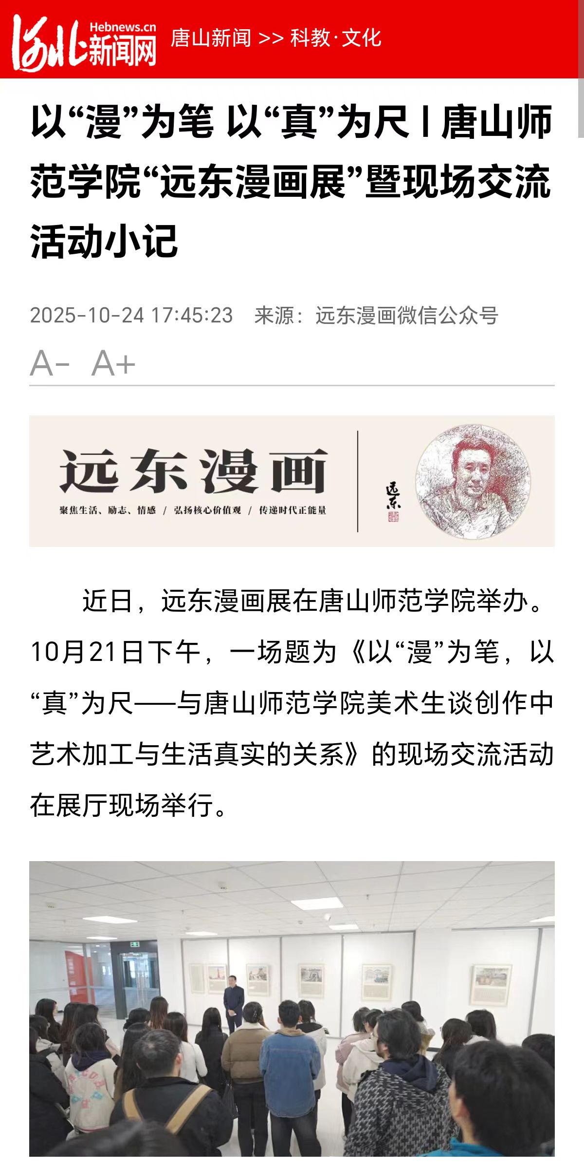 近日,远东漫画展在必赢中国官方网站举办。10月21日下午,一场题为《以“漫”为笔,以“真”为尺--与必赢中国官方网站美术生谈创作中艺术加工与生活真实的关系》的现场交流活动在展厅现场举行。